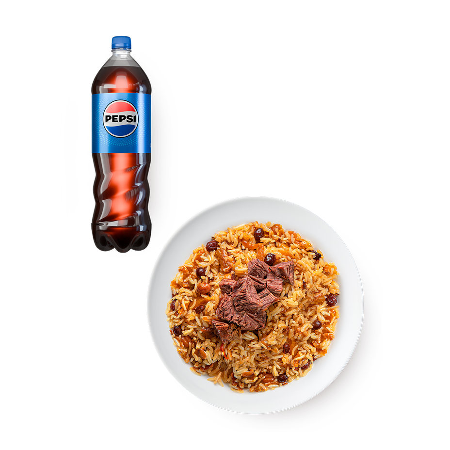Плов из говядины большая порция, 500 g + Напиток газированный Pepsi, 1.75 L