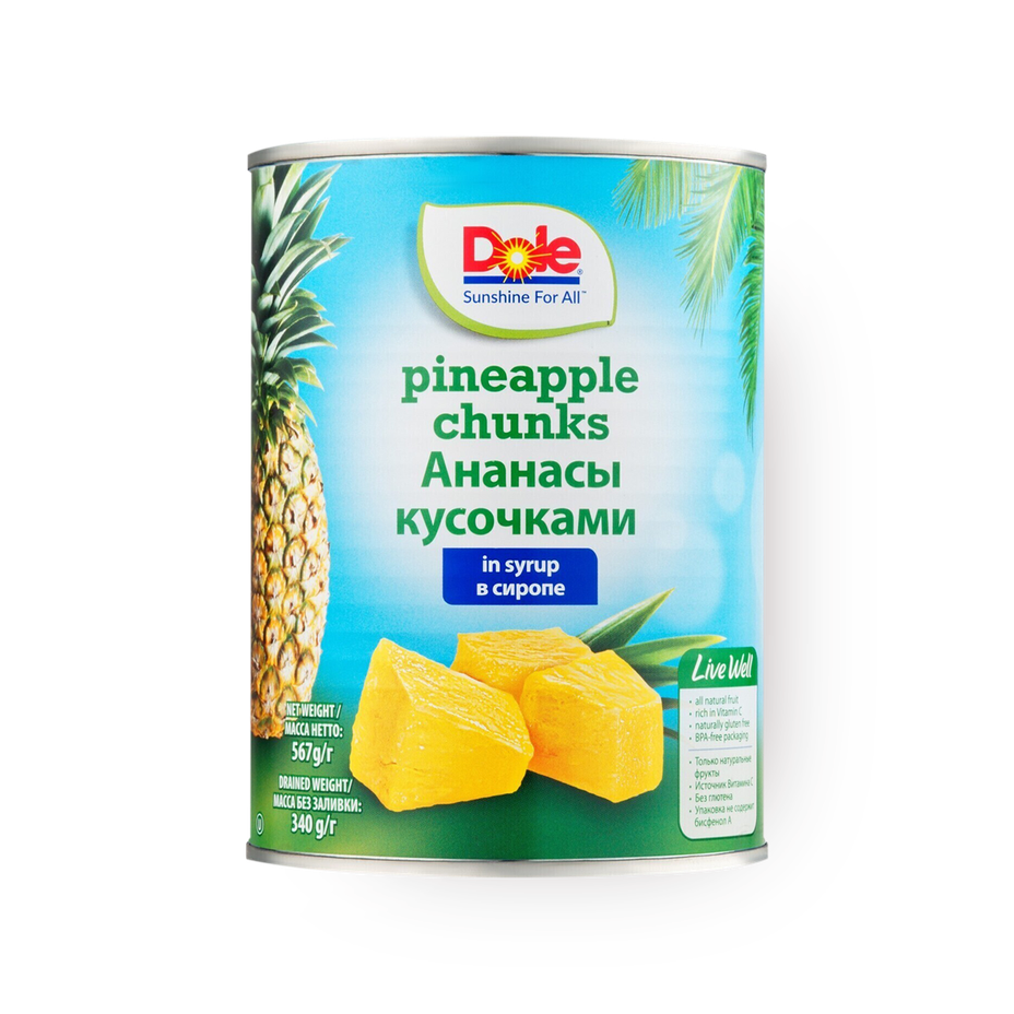 Ананасовые кусочки в сиропе можно добавить в десерты или подать к мороженому. Они сделаны из спелых плодов, которые сохраняют сладость и сочность.