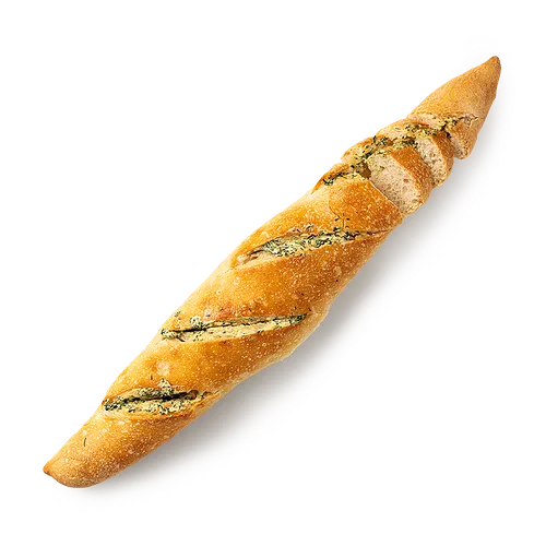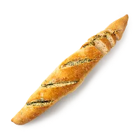 Этот багет выпекают с чесноком и укропом, которые придают ему аромат. Можно подать к супу или съесть просто так.