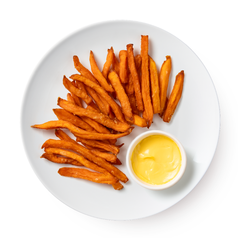 Батат фри — это хрустящие ломтики, которые можно подать в качестве закуски или гарнира. Они приготовлены с лёгкой сладковатой нотой, которая сочетается с солёными блюдами.