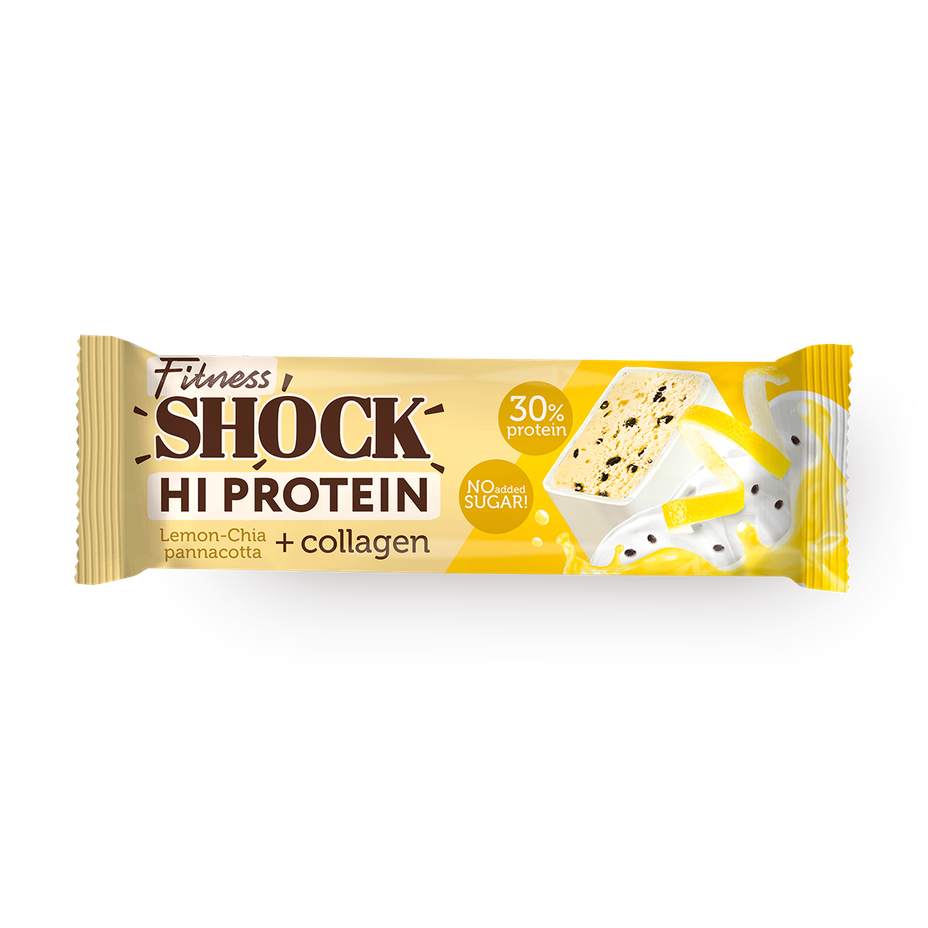 Этот батончик передаёт вкус лимона с мягкой глазурью, который напоминает торт. В нём есть чиа и коллаген, а также 30 граммов белка.