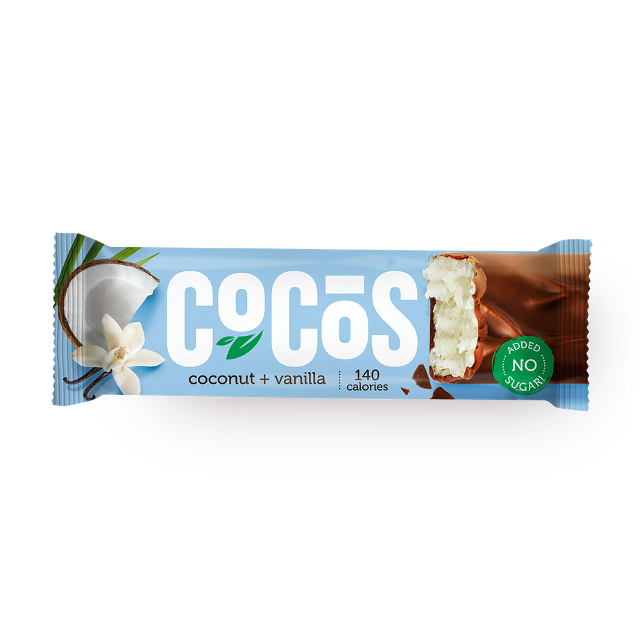 В этом батончике сочетаются ваниль и кокос. Его можно взять с собой на тренировку или в дорогу.