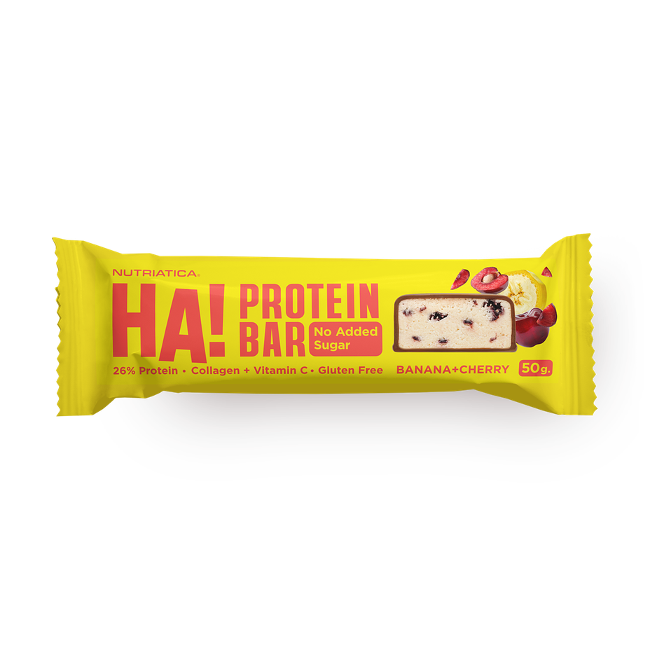 Этот батончик содержит 26 граммов белка и сочетает вкус банана с вишнёвой кислинкой. Его можно взять с собой на тренировку или в качестве перекуса.