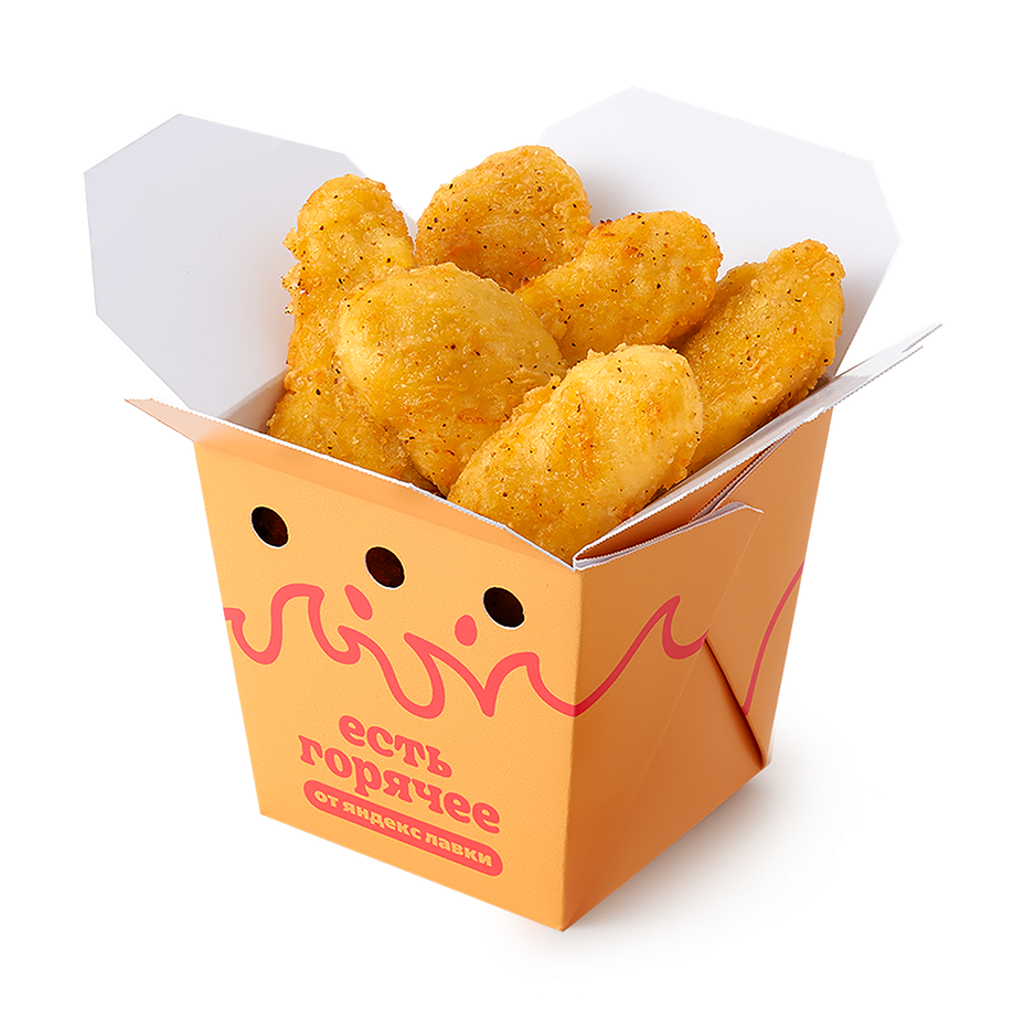 Большая порция стрипсы с сырным соусом и кетчупом , 6 шт