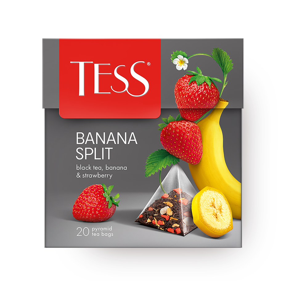 Чай чёрный Tess Banana Split с бананом и клубникой в пирамидках