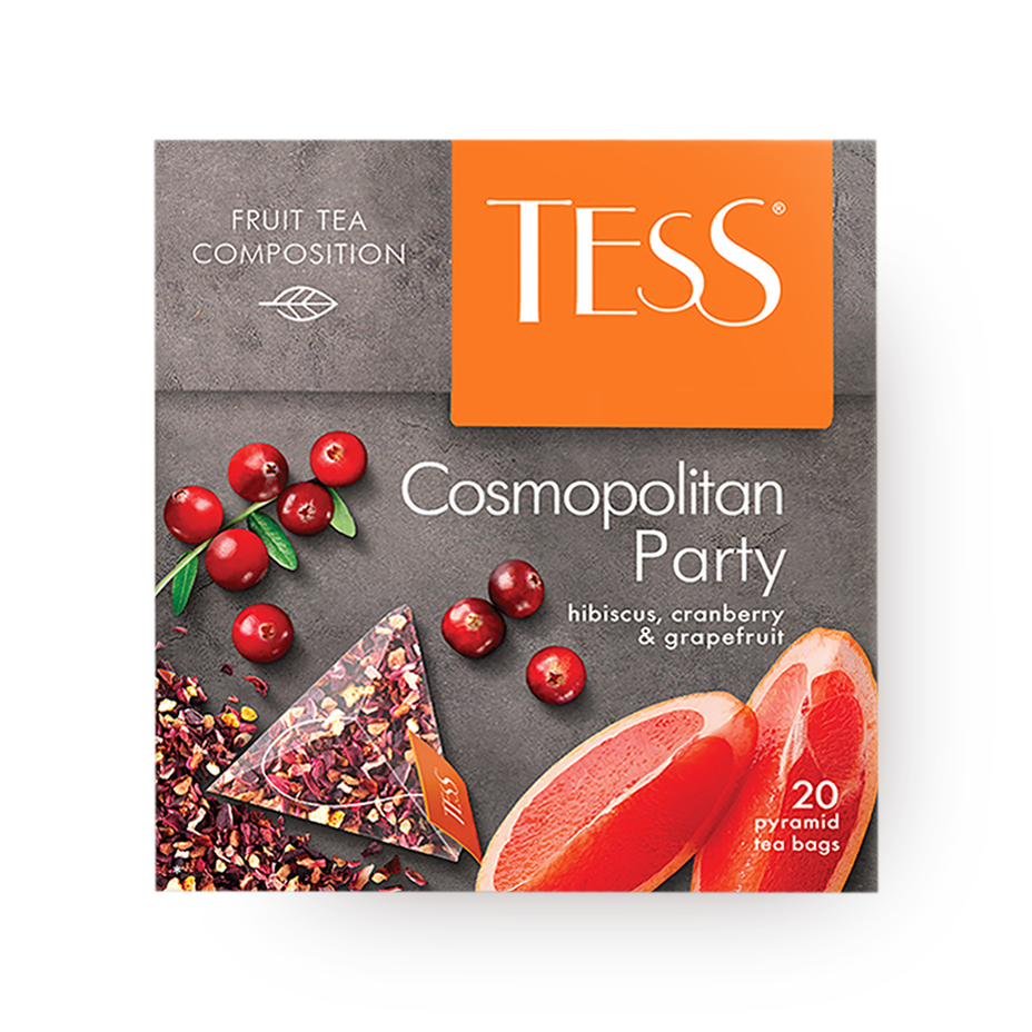 Чай фруктовый Tess Cosmopolitan Party гибискус, клюква и грейпфрут в пирамидках