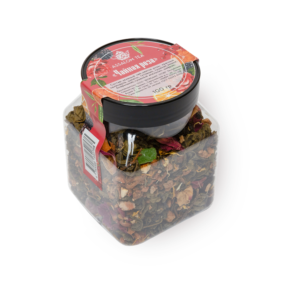 Зеленый чай, цветок розы, красный боярошник, календула, цукаты, тутовник, сушеная вишня, сушеный апельсин.