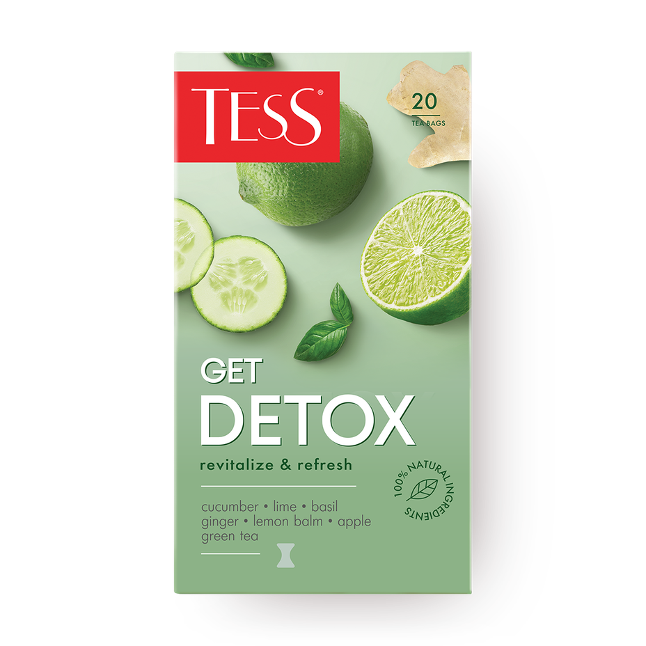 Чай зелёный Tess Get Detox с базиликом, имбирём, ароматом лайма и свежего огурца в пакетиках