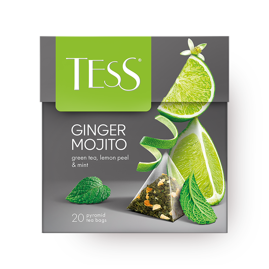 Зелёный чай в пирамидках с имбирём, лимонной цедрой и мятой. Напиток имеет свежий вкус с лёгкой остротой и цитрусовыми нотами.