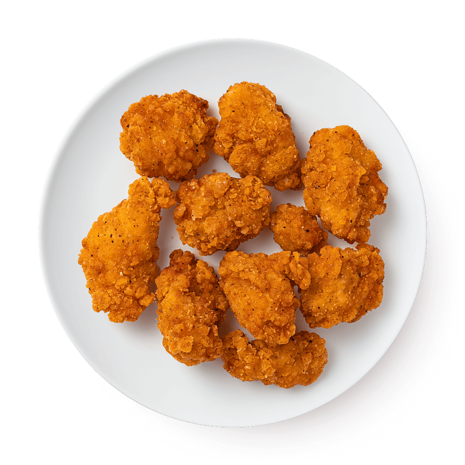 Куриные кусочки в хрустящей панировке с приправой из чеснока и перца. Их можно взять с собой или подать к соусу на выбор.