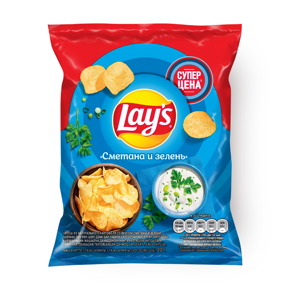 Чипсы картофельные Lays со вкусом сметаны и зелени