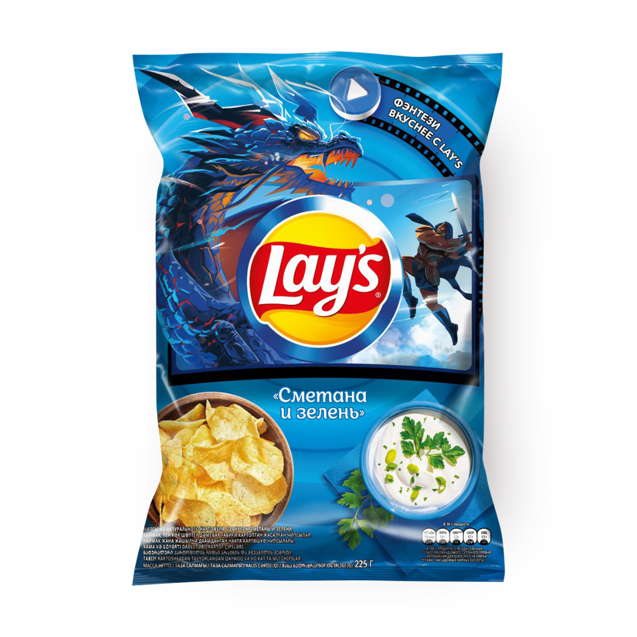 Хрустящие чипсы со вкусом сметаны и зелени. Их удобно взять с собой для перекуса или на встречу с друзьями.