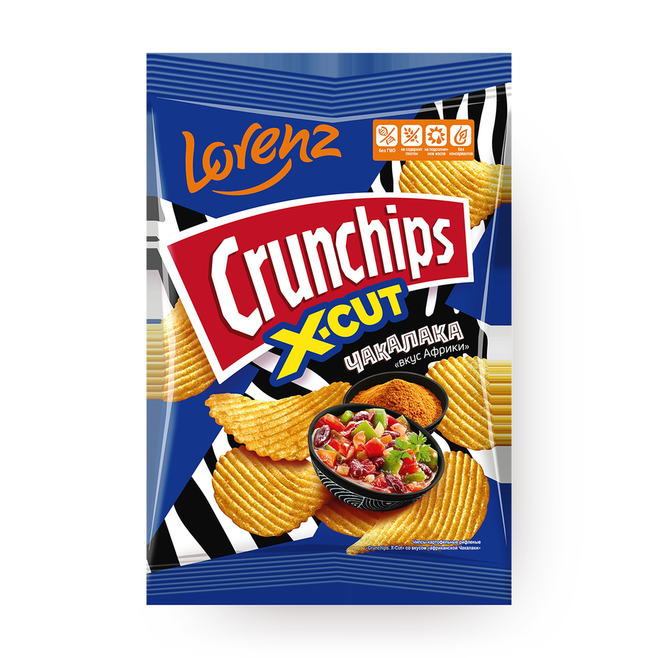 Чипсы картофельные Crunchips X-Cut со вкусом африканской Чакалаки рифлёные