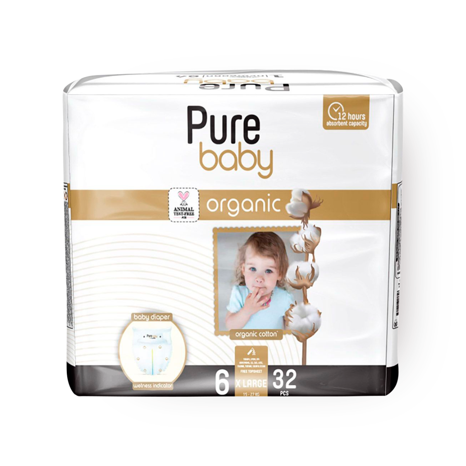 Эти подгузники подходят для детей весом от 15 до 27 килограмм. В упаковке 32 штуки, которые удобно менять в течение дня.