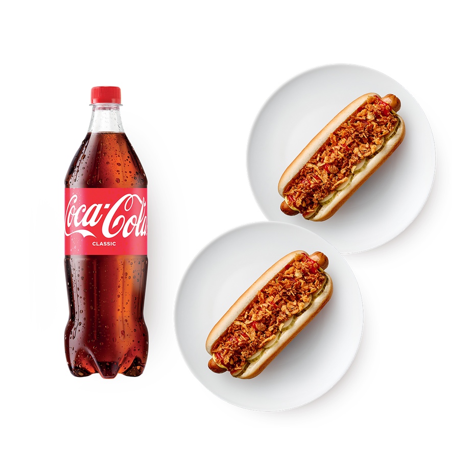 Два хот-дога без горчицы «Из Лавки», 190 g и Напиток Coca-Cola Classic, 1 L