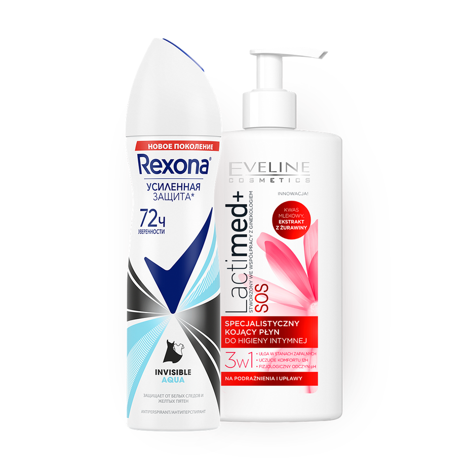 Дезодорант-антиперспирант Rexona Women Aqua, 150 ml + Гель для интимной гигиены Eveline Cosmetics Lactimed+ SOS Soothing 3 в 1 успокаивающий, 250 ml