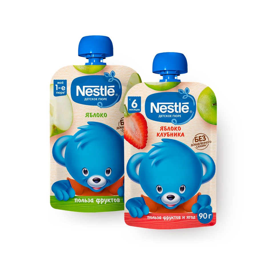 Пюре Nestle яблоко-клубника с 6 месяцев, 90 g + Пюре Nestle яблоко с 5 месяцев, 90 g