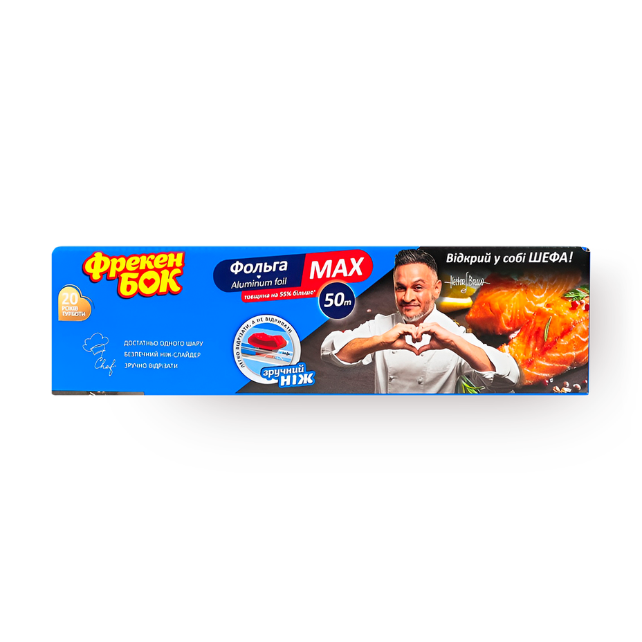 Эта фольга легко отрывается благодаря встроенному ножу-слайдеру. Она подходит для запекания и хранения продуктов.
