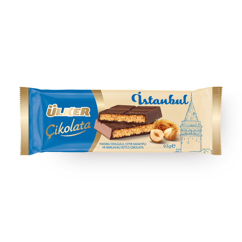 Cахар, сухое цельное молоко, фундук 10,3% (пюре из фундука, кусочки фундука), какао масло, какао масса, растительные масла (пальмовое, пальмоядровое), хрустящие крошки «Кадаиф» и «Пахлава» (3,6%), (пшеничная мука, сахар, топлёное масло (молоко), соль, крахмал, яйцо, манная крупа (глютен), эмульгатор (соевый лецитин), ароматизатор, молоко), сухая молочная сыворотка, сухое обезжиренное молоко, мальтодекстрин, эмульгатор (соевый лецитин), соль, ароматизаторы. Массовая доля общего сухого остатка какао в молочном шоколаде не менее 30%, массовая доля общего сухого обезжиренного остатка какао в молочном шоколаде не менее 5.8%, массовая доля общего сухого молока в шоколадной массе не менее 19%, массовая доля общего молочного жира в шоколадной массе не менее 4%. Содержит молочные продукты, лесной орех, пшеничную клейковину (глютен), яичные и соевые продукты.