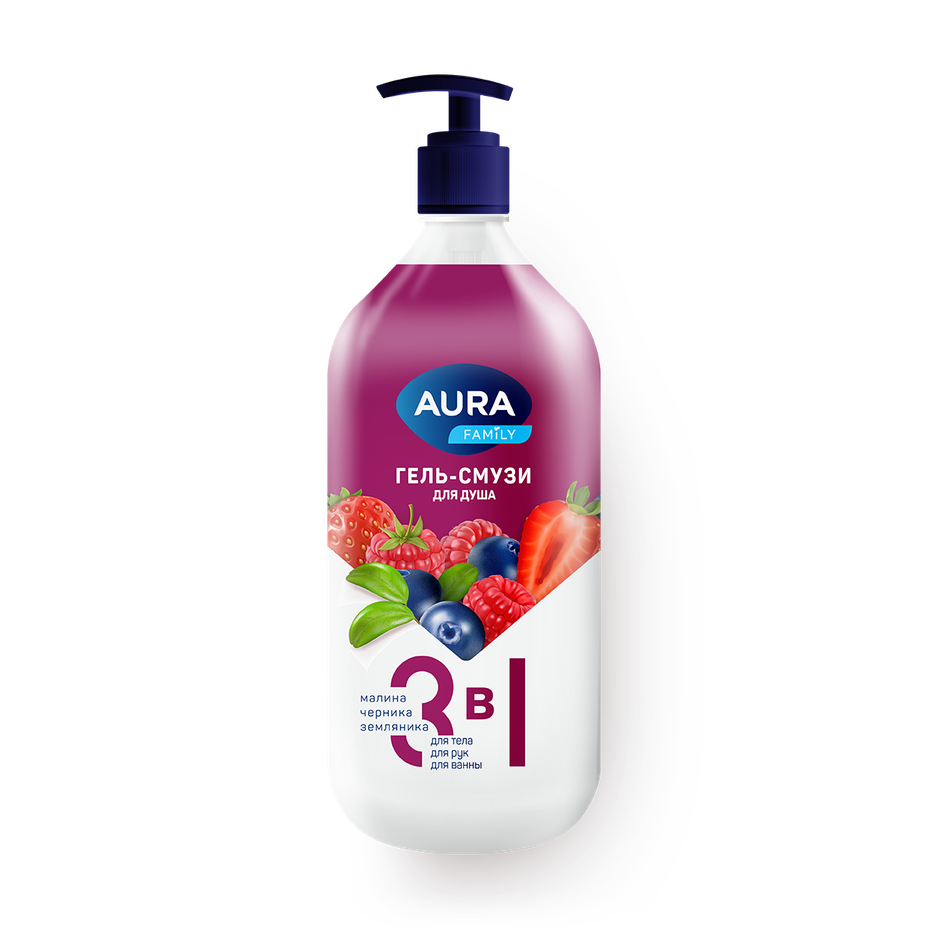 Этот гель-смузи сочетает ароматы малины, черники и земляники. Он подходит для ежедневного использования и легко пенится.