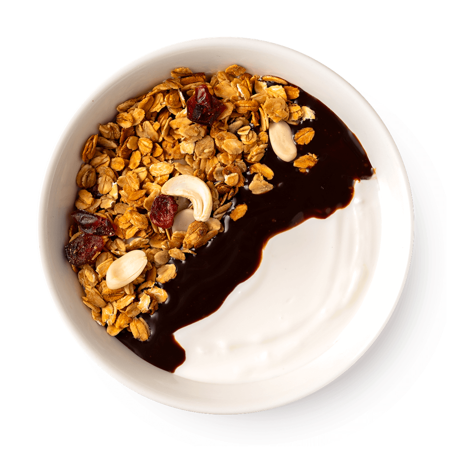 Гранола с йогуртом и шоколадным соусом