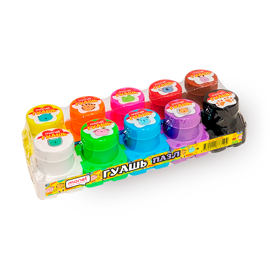 Этот набор включает гуашь и наклейки, которые помогут создать яркие рисунки. Можно собрать пазл или раскрасить его по своему вкусу.