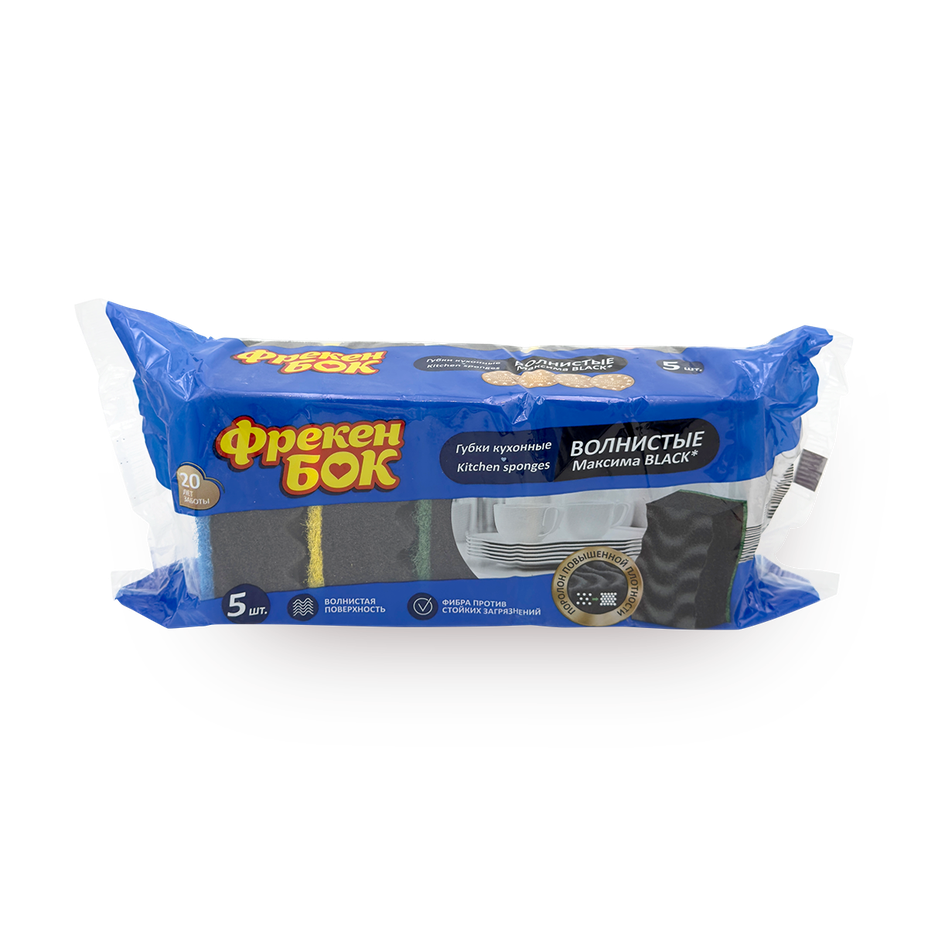 Губки кухонные «Фрекен Бок» Максима Black с волнистой поверхностью