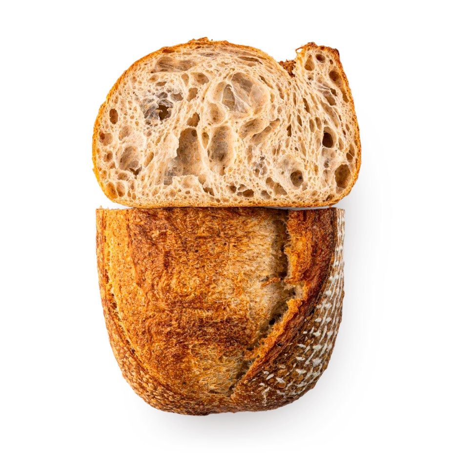 Мука пшеничная, мука цельнозерновая, закваска, солод белый не ферментированный, соль пищевая морская.