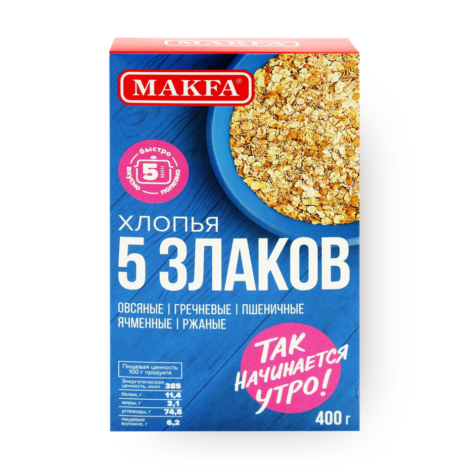 Овсяные, ржаные, гречневые, ячменные и пшеничные хлопья.