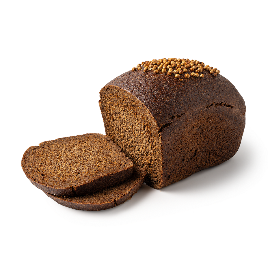 Бородинский хлеб получается тёмным благодаря солоду в составе. А ещё у него насыщенный ржаной вкус с нотками кориандра и плотная текстура - его удобно нарезать на ломтики.