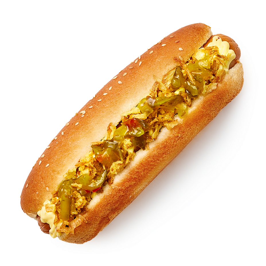 Хот-дог с огуречным релишем и говяжьей колбаской «Из Лавки»