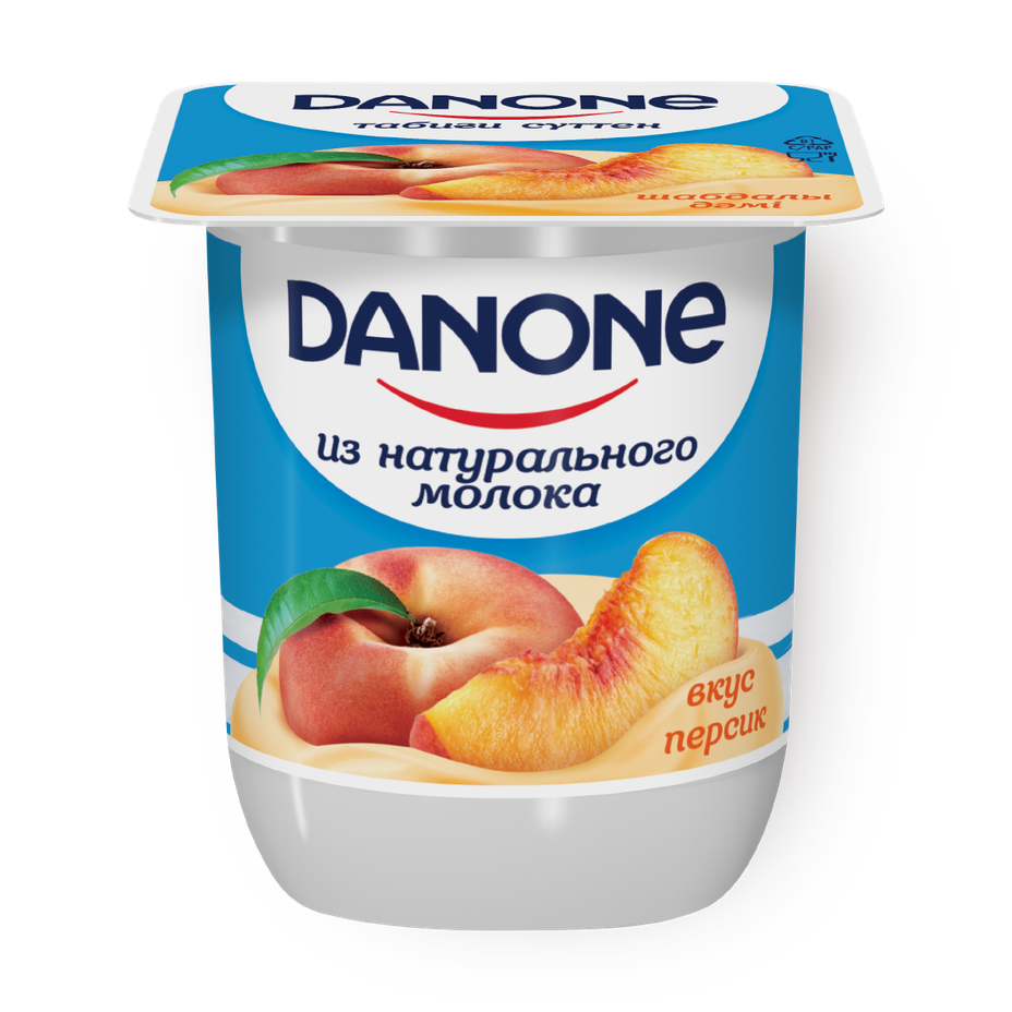 Обезжиренное молоко, сливки, вода, сахар-песок, сухое обезжиренное молоко, йогуртовая закваска, загуститель (Е1442), желатин, фруктовая добавка (персик, сахар, сахарный сироп, загустители (Е1442, пектины), красители (маслосмолы паприки, рибофлавин), регуляторы кислотности (цитрат кальция, цитраты натрия, лимонная кислота), ароматизатор идентичный натуральному персик.