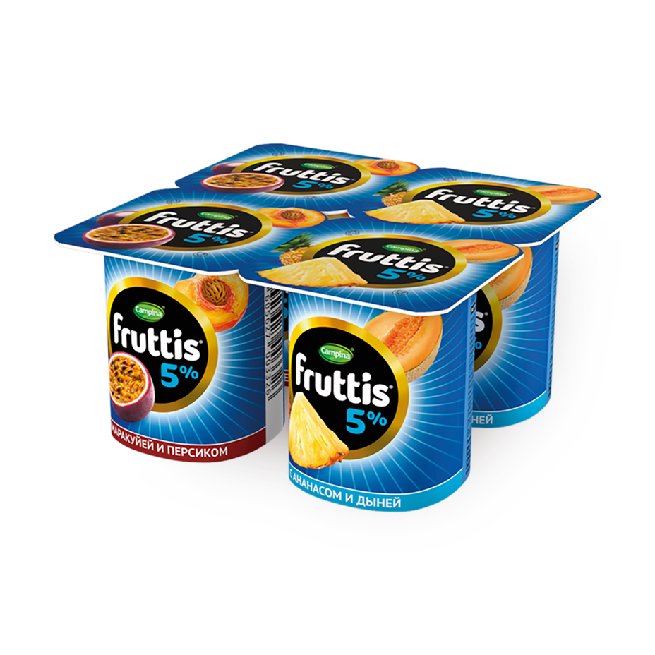 Йогурт Fruttis с персиком, маракуйей, ананасом и дыней 5%
