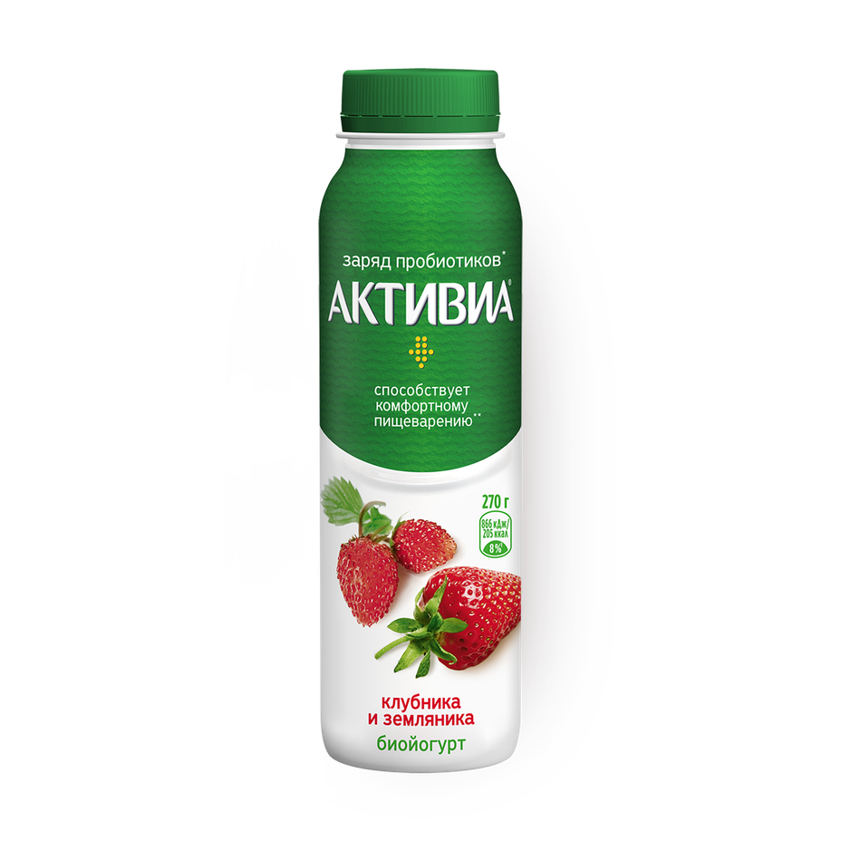 Нормализованное молоко, восстановленное молоко из сухого молока, наполнитель (сахарный сироп, клубника, кукурузный крахмал, пюре земляники, соки чёрной моркови и лимона концентрированные, ароматизатор натуральный, загуститель — пектины, краситель — экстракт паприки), сахар, йогуртовая закваска, бифидобактерии ActiRegularis®.