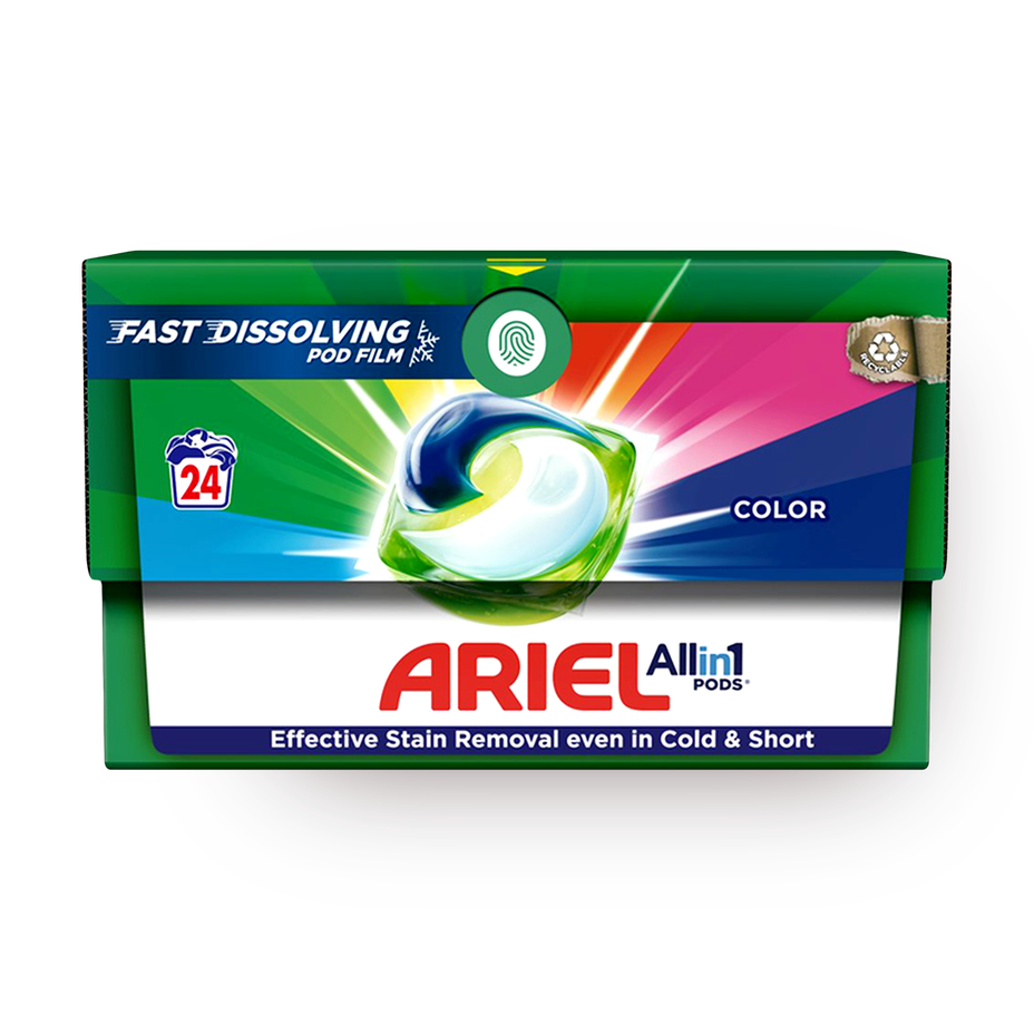 Эти капсулы подходят для цветного белья и содержат энзимы, которые помогают удалять пятна. Их удобно использовать — просто положите одну капсулу в барабан стиральной машины.