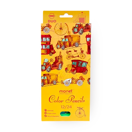 Эти карандаши легко ложатся на бумагу и оставляют яркие линии. В наборе есть 24 цвета и точилка, которая поможет сохранить остроту грифеля.