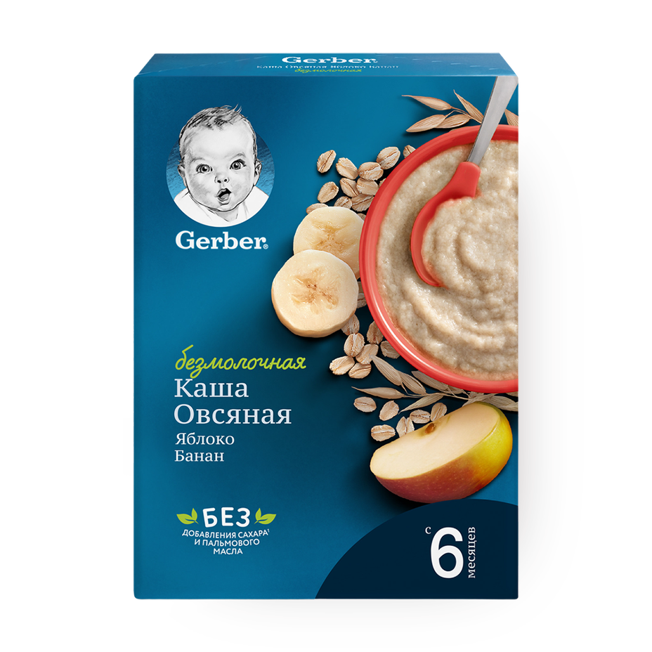 Каша безмолочная овсяная Gerber банан и яблоко
