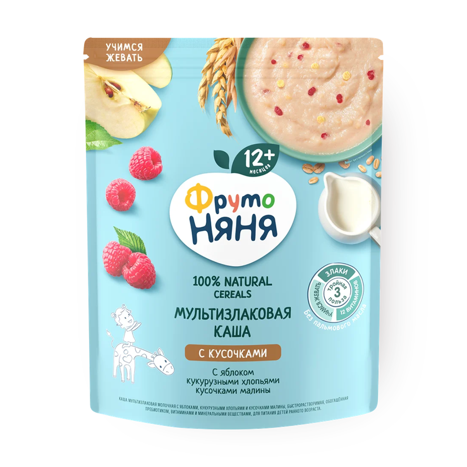 Каша молочная мультизлаковая «Фрутоняня» яблоко-малина-кукурузные хлопья