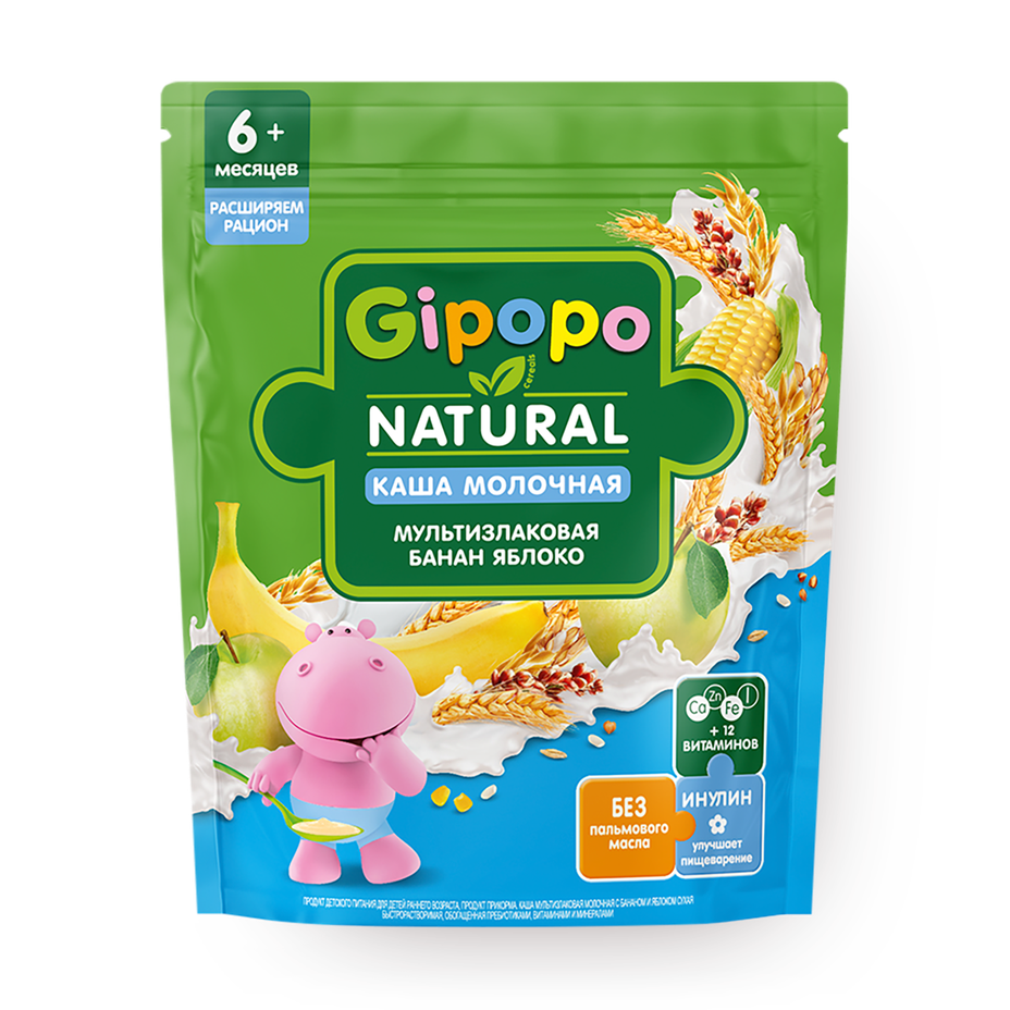 Каша молочная мультизлаковая Gipopo банан и яблоко