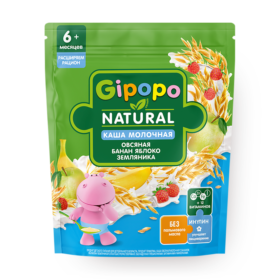 Каша молочная овсяная Gipopo банан, яблоко и земляника