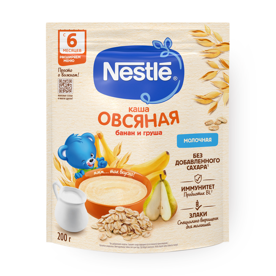 Каша молочная овсяная Nestle с грушей и бананом с 6 месяцев