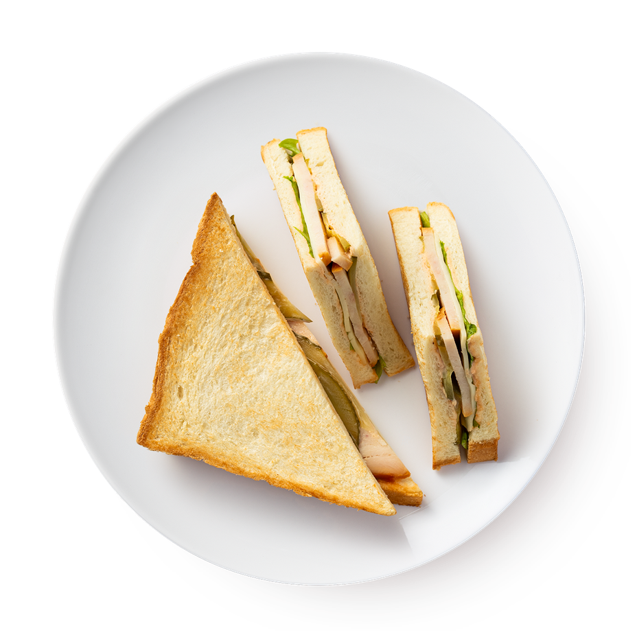 Этот клаб-сэндвич с копчёной индейкой дополнен сыром, маринованным огурцом и листьями салата. Его можно взять с собой на перекус или съесть за обедом.
