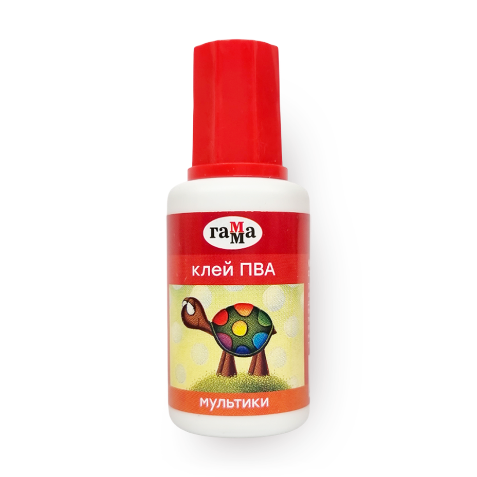 Этот клей легко наносится кисточкой, которая идёт в комплекте. Он подходит для бумаги, картона и других материалов.