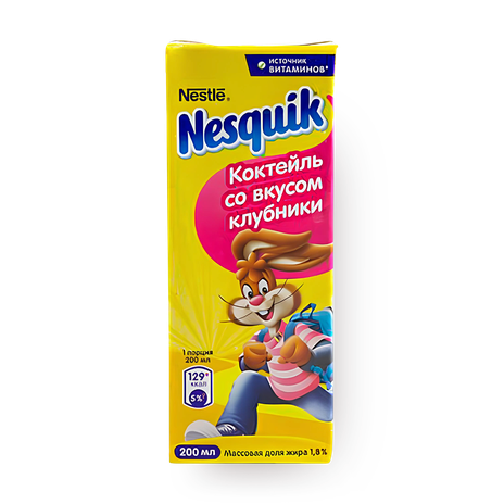 Этот коктейль с клубничным вкусом можно взять с собой или выпить после прогулки. В нём есть витамины, которые добавлены для сбалансированного питания.