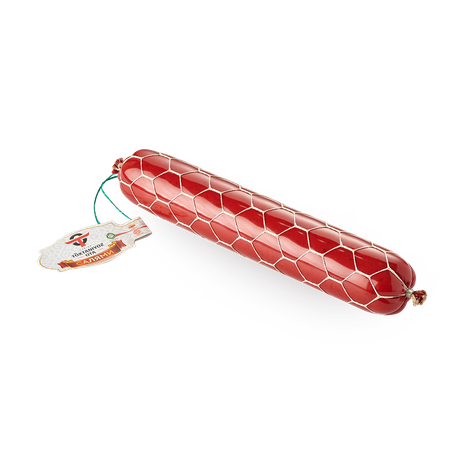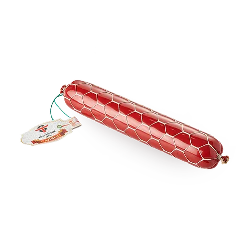 Эта колбаса сделана из говядины с добавлением мяса птицы и специй. Её можно нарезать для бутербродов или добавить в салат.