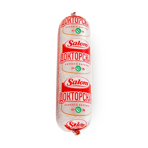 Эта варёная колбаса сделана из говядины с добавлением куриной шкуры и специй. Её можно нарезать для бутербродов или добавить в салат.