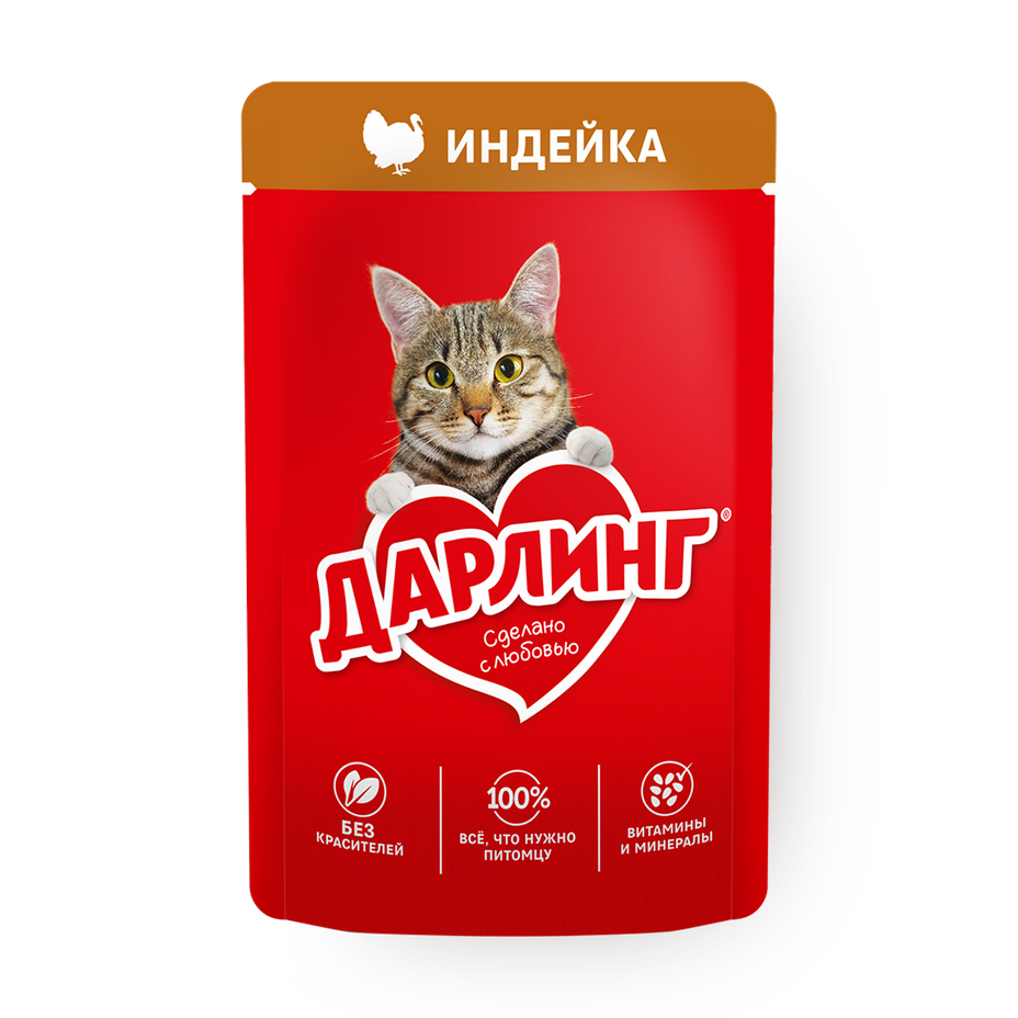 Этот влажный корм содержит нежное мясо индейки, которое нравится кошкам. Его удобно давать питомцу в качестве основного питания или дополнения к сухому корму.