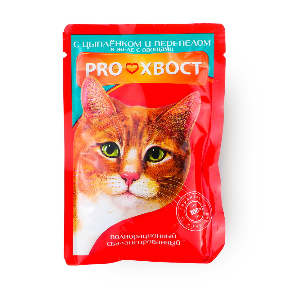 Корм влажный для кошек «ProХвост» с цыплёнком и перепелом с овощами в желе