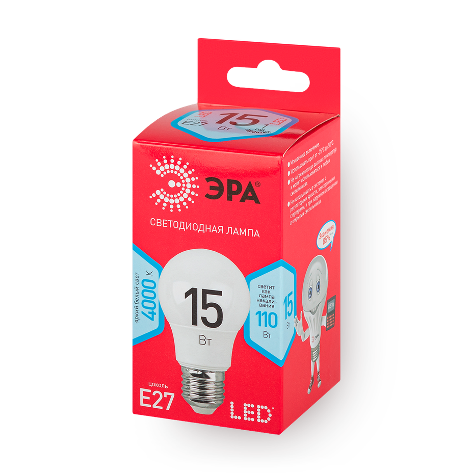 Эта лампа даёт нейтральный белый свет, который подходит для жилых помещений. Её форма в виде груши равномерно распределяет освещение.
