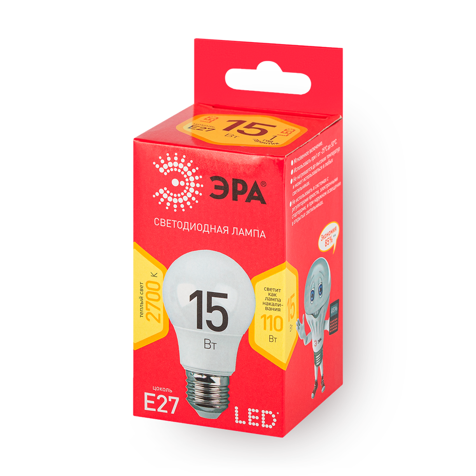 Эта светодиодная лампа с цоколем Е27 даёт тёплый белый свет. Она подходит для люстр и светильников с таким патроном.